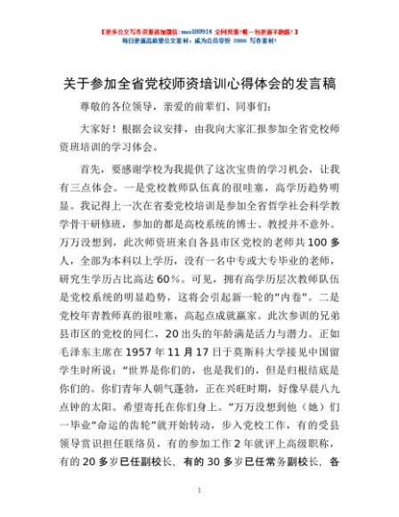 / 关于参加全省党校师资培训心得体会的发言稿