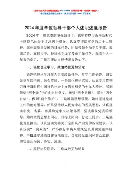 / 2024年度单位领导干部个人述职述廉报告