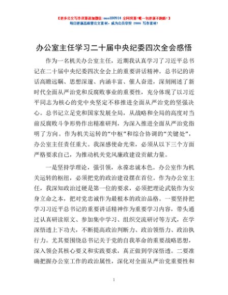 / 办公室主任学习二十届中央纪委四次全会感悟