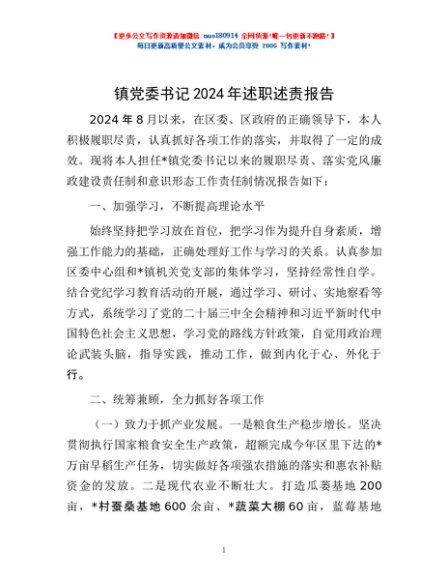 / 镇党委书记2024年述职述责报告
