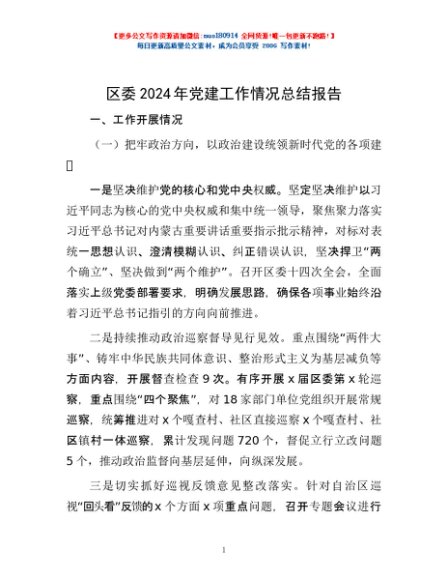 / 区委2024年党建工作情况总结报告