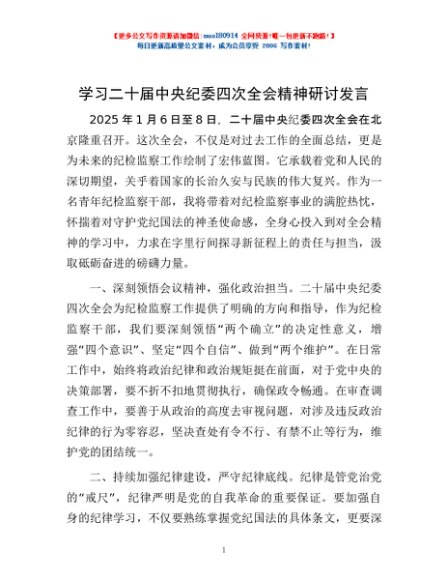 / 学习二十届中央纪委四次全会精神研讨发言