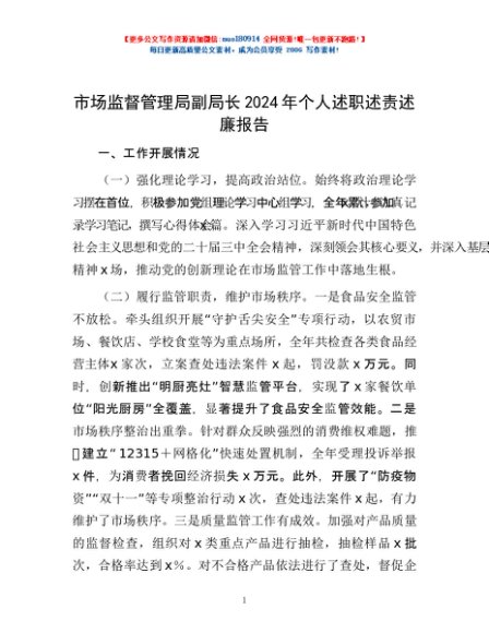 / 市场监督管理局副局长2024年个人述职述责述廉报告