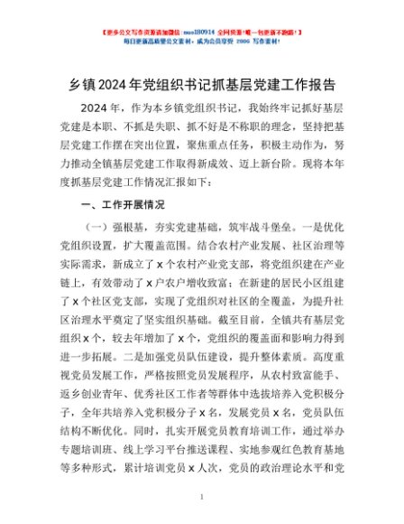 / 乡镇2024年党组织书记抓基层党建工作报告