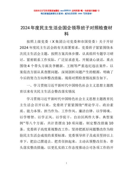 / 2024年度民主生活会国企领导班子对照检查材料
