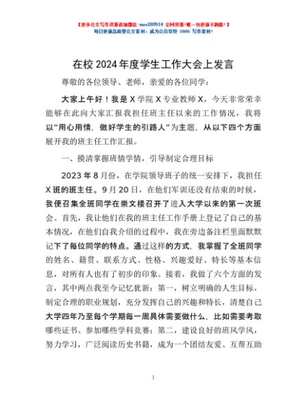 / 在校2024年度学生工作大会上发言