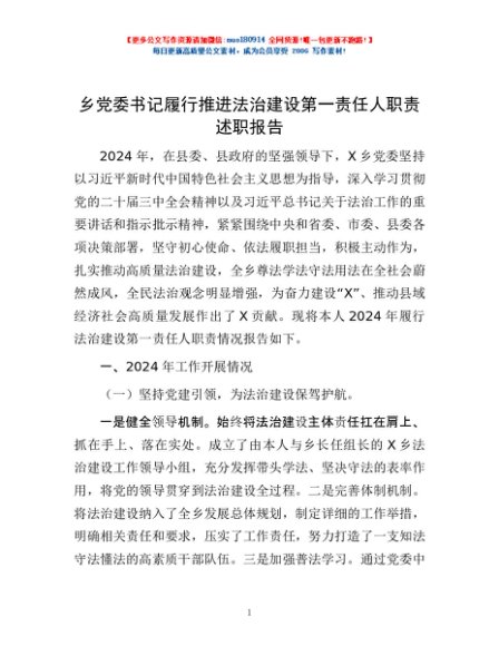 / 乡党委书记履行推进法治建设第一责任人职责述职报告