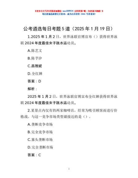 / 公考遴选每日考题5道(2025年1月19日)