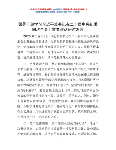 / 领导干部学习习近平总书记在二十届中央纪委四次全会上重要讲话研讨发言