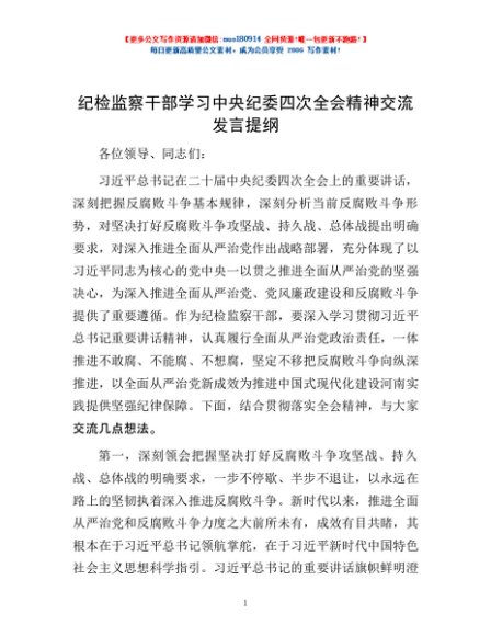 / 纪检监察干部学习中央纪委四次全会精神交流发言提纲