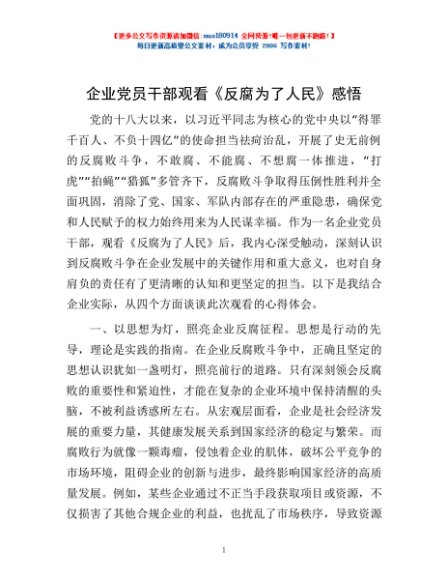 / 企业党员干部观看《反腐为了人民》感悟