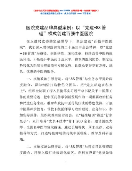 / 医院党建品牌典型案例:以“党建+8S管理”模式创建百强中医医院
