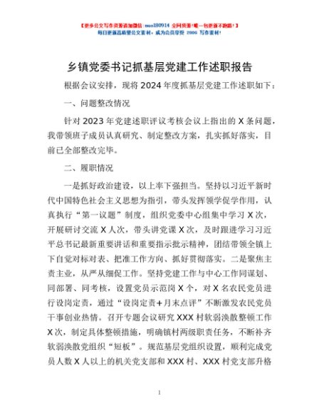 / 乡镇党委书记抓基层党建工作述职报告