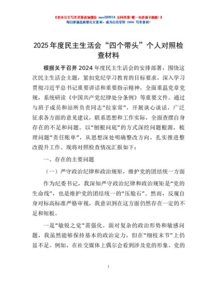 / 2025年度民主生活会“四个带头”个人对照检查材料