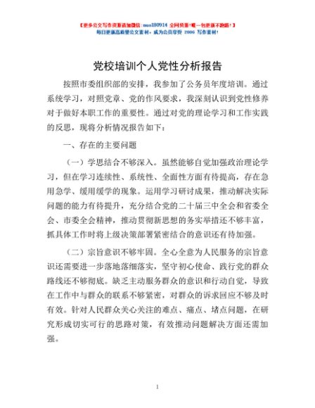 / 党校培训个人党性分析报告