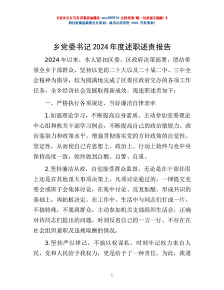 / 乡党委书记2024年度述职述责报告