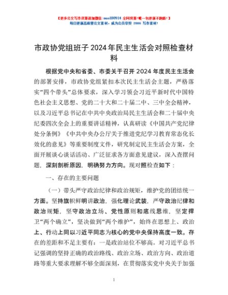 / 市政协党组班子2024年民主生活会对照检查材料