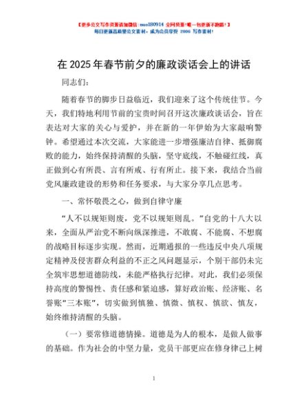 / 在2025年春节前夕的廉政谈话会上的讲话