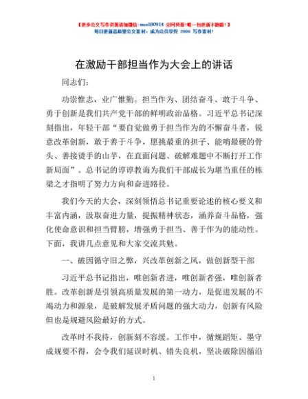 / 在激励干部担当作为大会上的讲话