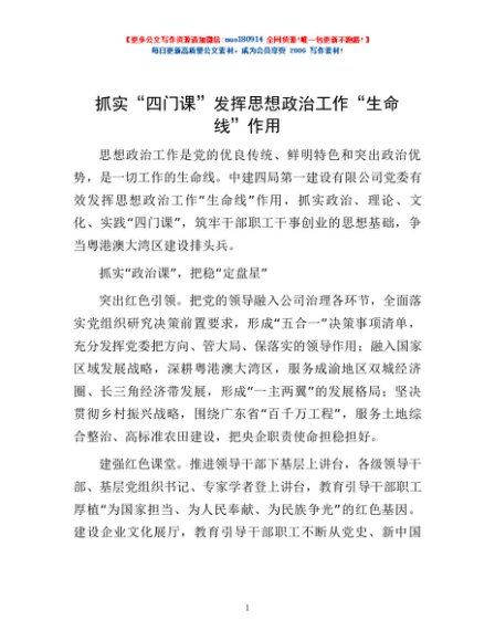 / 抓实“四门课”发挥思想政治工作“生命线”作用