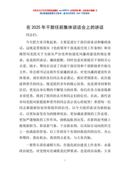/ 在2025年干部任前集体谈话会上的讲话