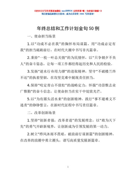 / 年终总结和工作计划金句50例