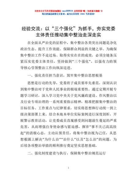 / 经验交流:以“三个强化”为抓手,夯实党委主体责任推动集中整治走深走实