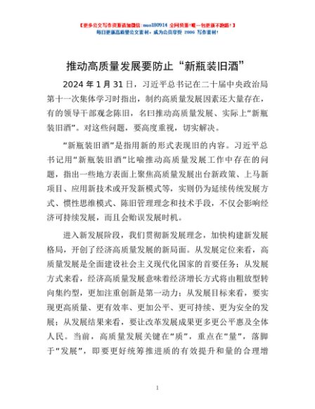 / 推动高质量发展要防止“新瓶装旧酒”