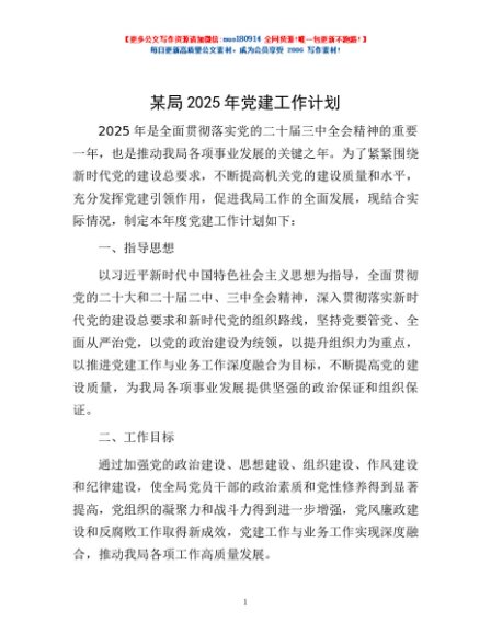 / 某局2025年党建工作计划
