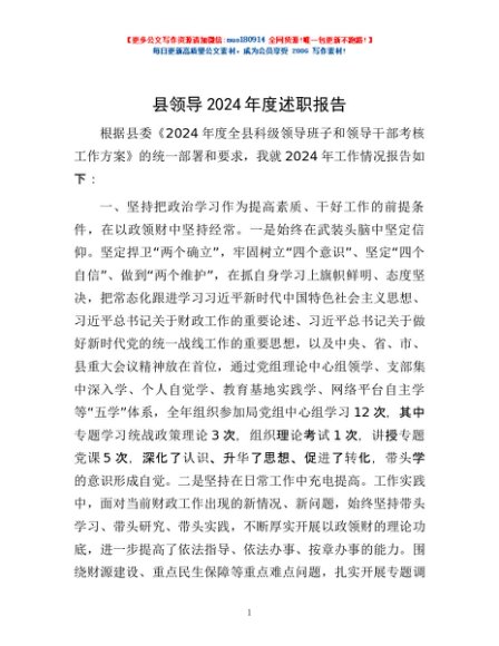 / 县领导2024年度述职报告