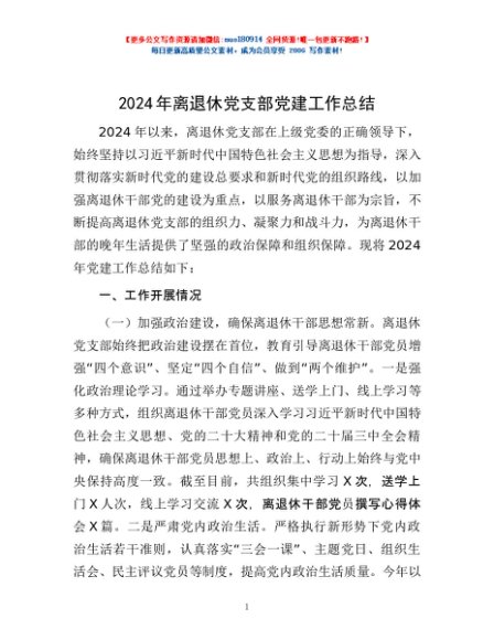 / 2024年离退休党支部党建工作总结