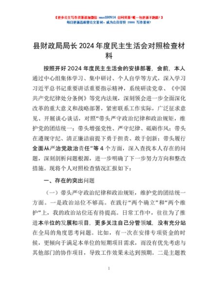 / 县财政局局长2024年度民主生活会对照检查材料