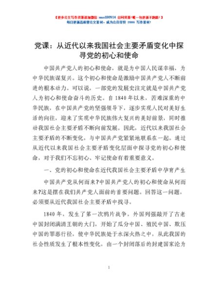 / 党课:从近代以来我国社会主要矛盾变化中探寻党的初心和使命