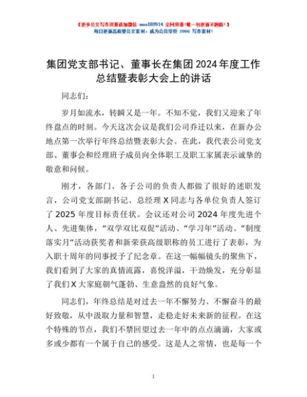 / 集团党支部书记、董事长在集团2024年度工作总结暨表彰大会上的讲话