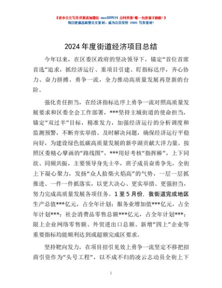 / 2024年度街道经济项目总结
