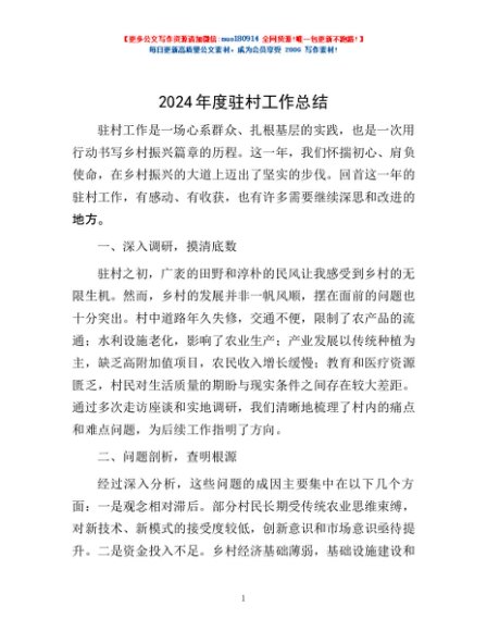 / 2024年度驻村工作总结