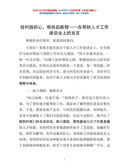 / 驻村践初心,帮扶启新程——在帮扶人才工作座谈会上的发言