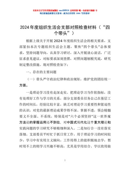 / 2024年度组织生活会支部对照检查材料(“四个带头”)