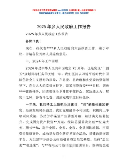 / 2025年乡人民政府工作报告