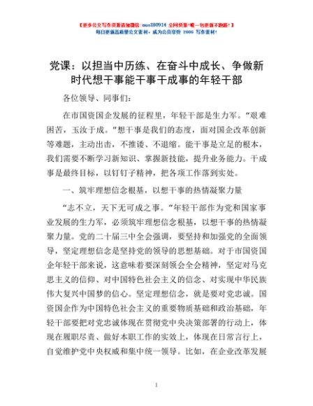 / 党课:以担当中历练、在奋斗中成长、争做新时代想干事能干事干成事的年轻干部