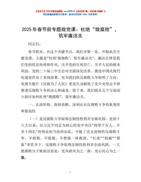 2025年春节前专题微党课:杜绝“微腐败”,筑牢廉洁关