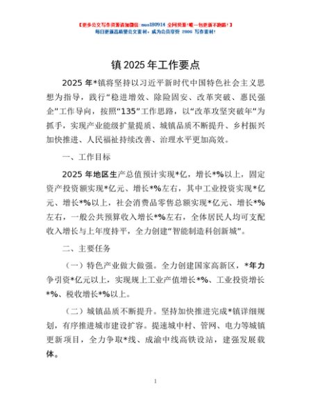 / 镇2025年工作要点