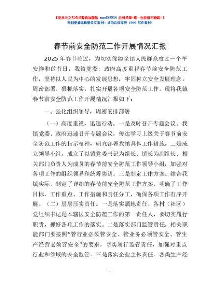 / 春节前安全防范工作开展情况汇报