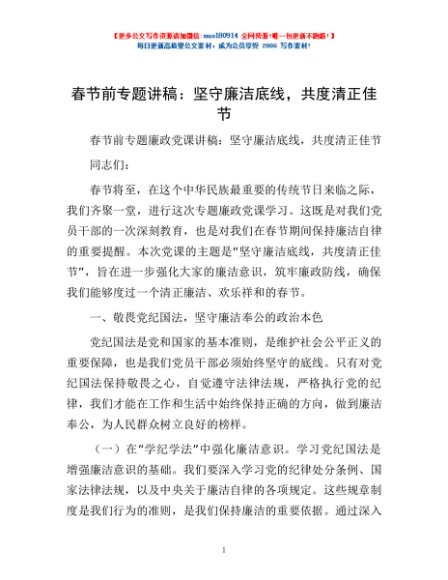 / 春节前专题讲稿:坚守廉洁底线,共度清正佳节