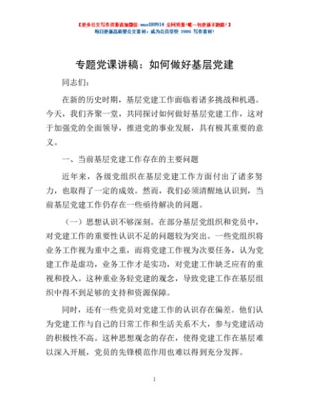 / 专题党课讲稿:如何做好基层党建