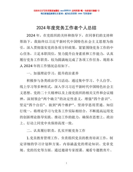 / 2024年度党务工作者个人总结