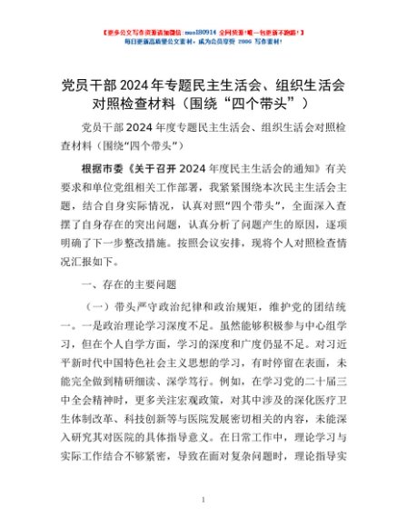 / 党员干部2024年专题民主生活会、组织生活会对照检查材料(围绕“四个带头”)