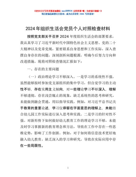/ 2024年组织生活会党员个人对照检查材料