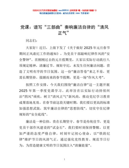 / 党课:谱写“三部曲” 奏响廉洁自律的“清风正气”