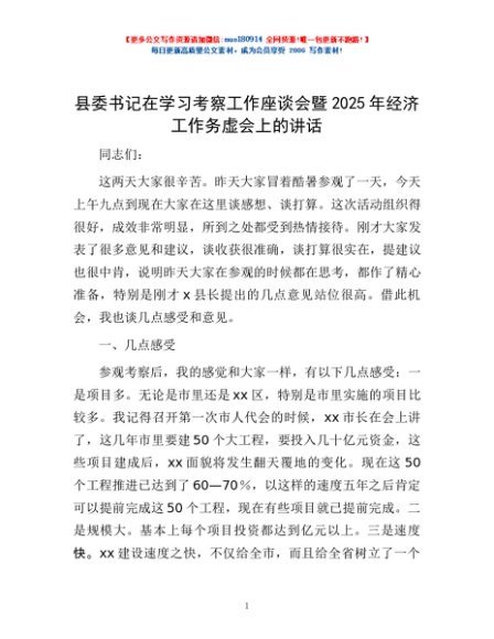 / 县委书记在学习考察工作座谈会暨2025年经济工作务虚会上的讲话